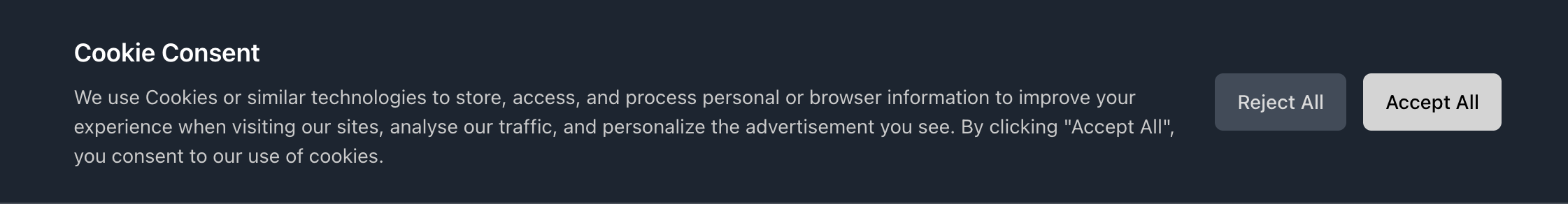 The Simple CMP component provides a lightweight, edge-rendered cookie consent banner that appears instantly without any JavaScript flicker. This component handles cookie consent management directly at the edge, offering a simple solution for basic consent requirements.